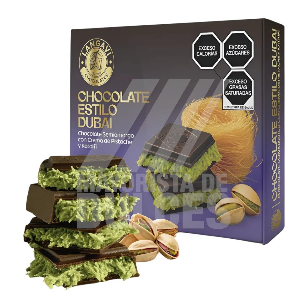 Langavi Chocolate Semiamargo estilo Dubai con Pistache paquete con 100g (Caja con 12 paquetes)