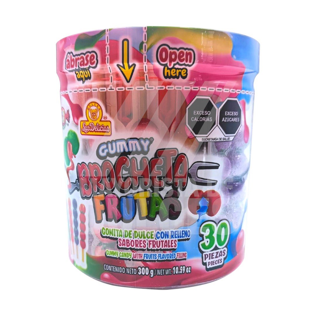 Las Delicias gomitas Gummy Brocheta FRUTAS vitrolero con 30 piezas (Caja con 12 vitroleros)