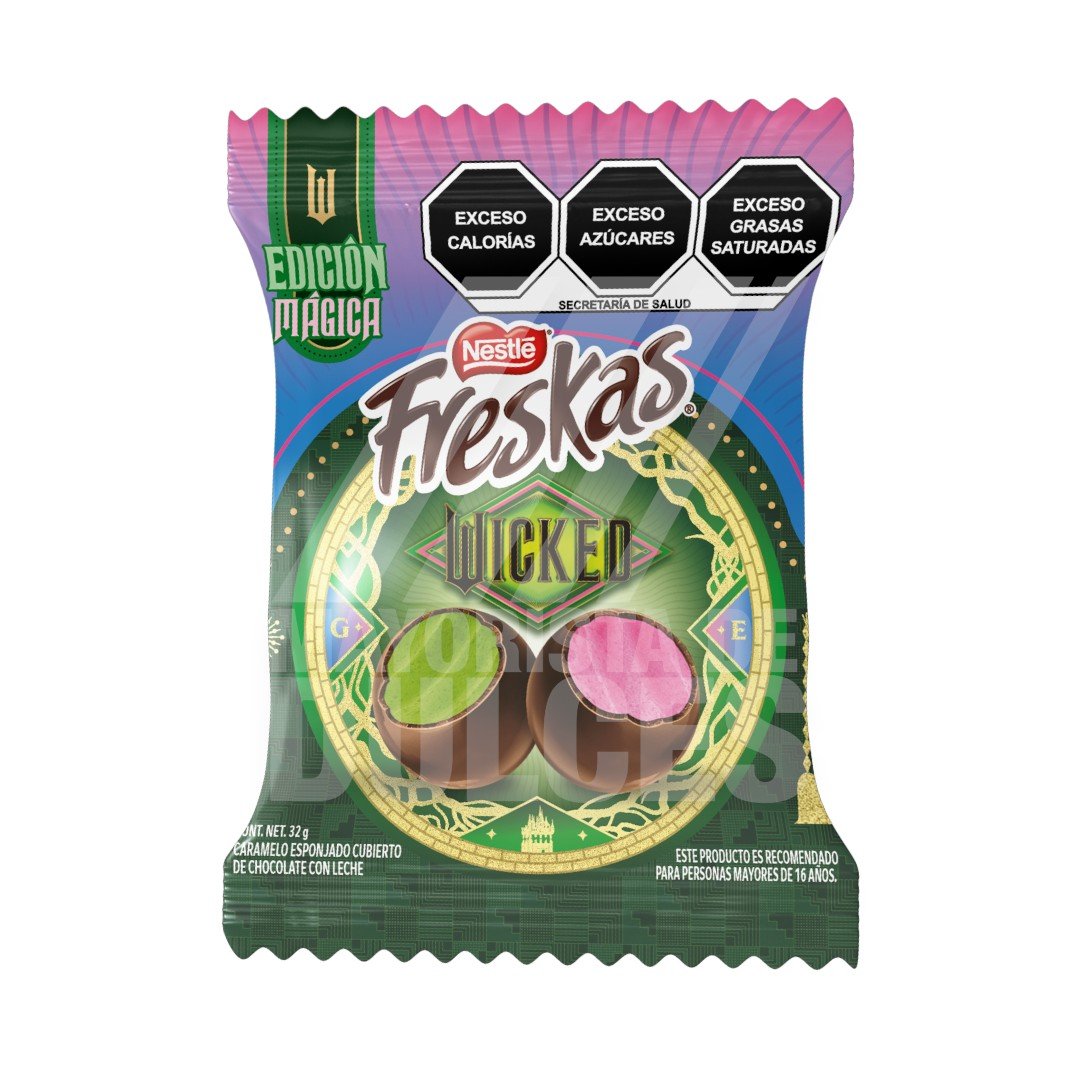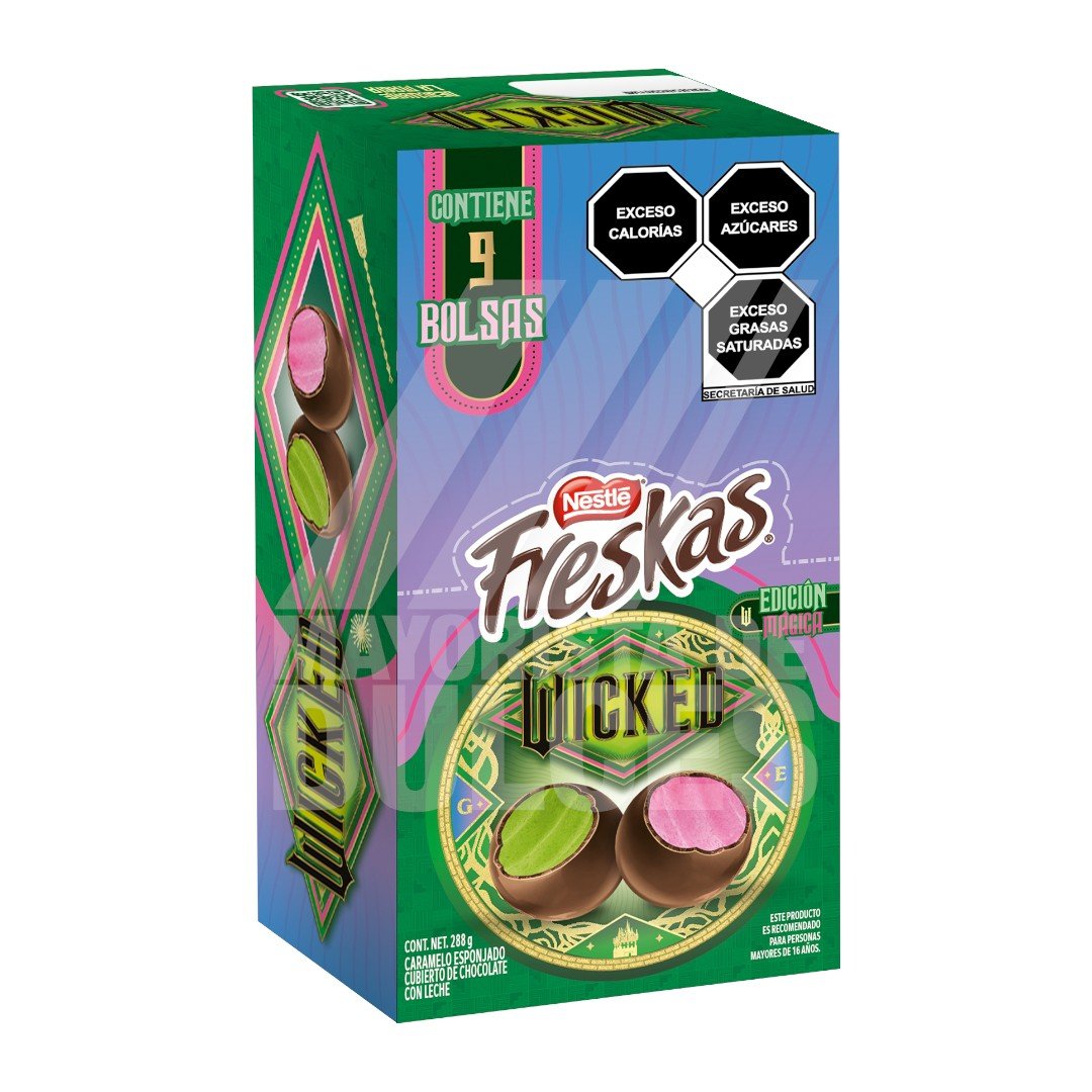🍫🍬 Las **Freskas Wicked de Nestlé** son bolitas crujientes de colores divertidos 🌈 con un corazón de delicioso chocolate Nestlé 😋. Su combinación de cobertura azucarada y centro cremoso es perfecta para quienes buscan un antojo dulce, alegre y lleno de energía ⚡.