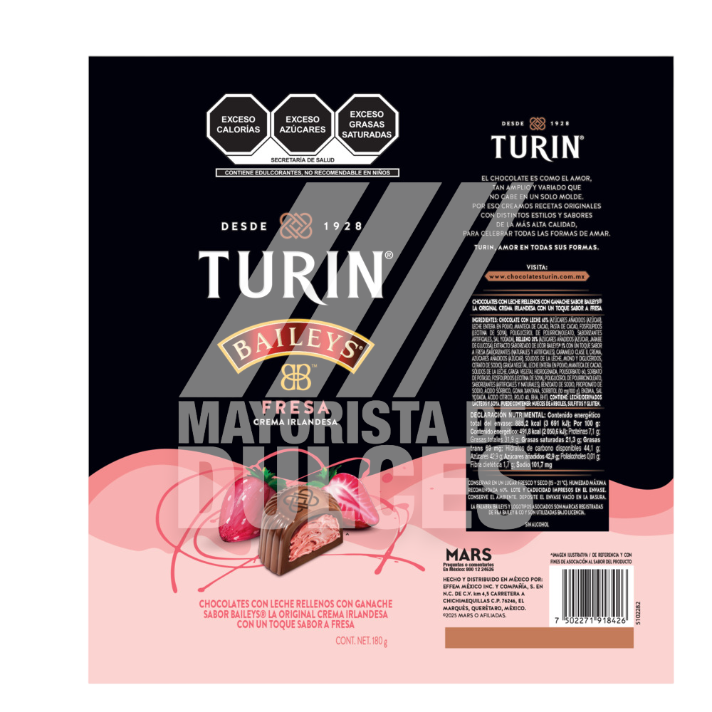 🍓🍫✨ ¡Un regalo que combina elegancia y sabor! El estuche de chocolate Turin Bailey’s Fresa de 80g es una experiencia gourmet única: chocolate fino relleno con el inconfundible licor Bailey’s y un toque dulce y frutal de fresa. Perfecto para obsequiar, disfrutar en momentos especiales o deleitarse con un capricho sofisticado. 🎁🥂